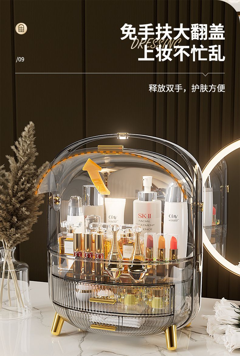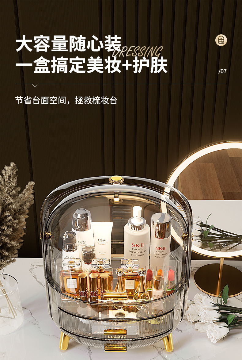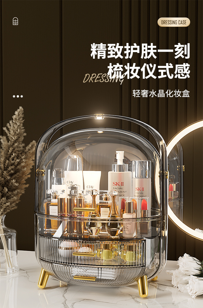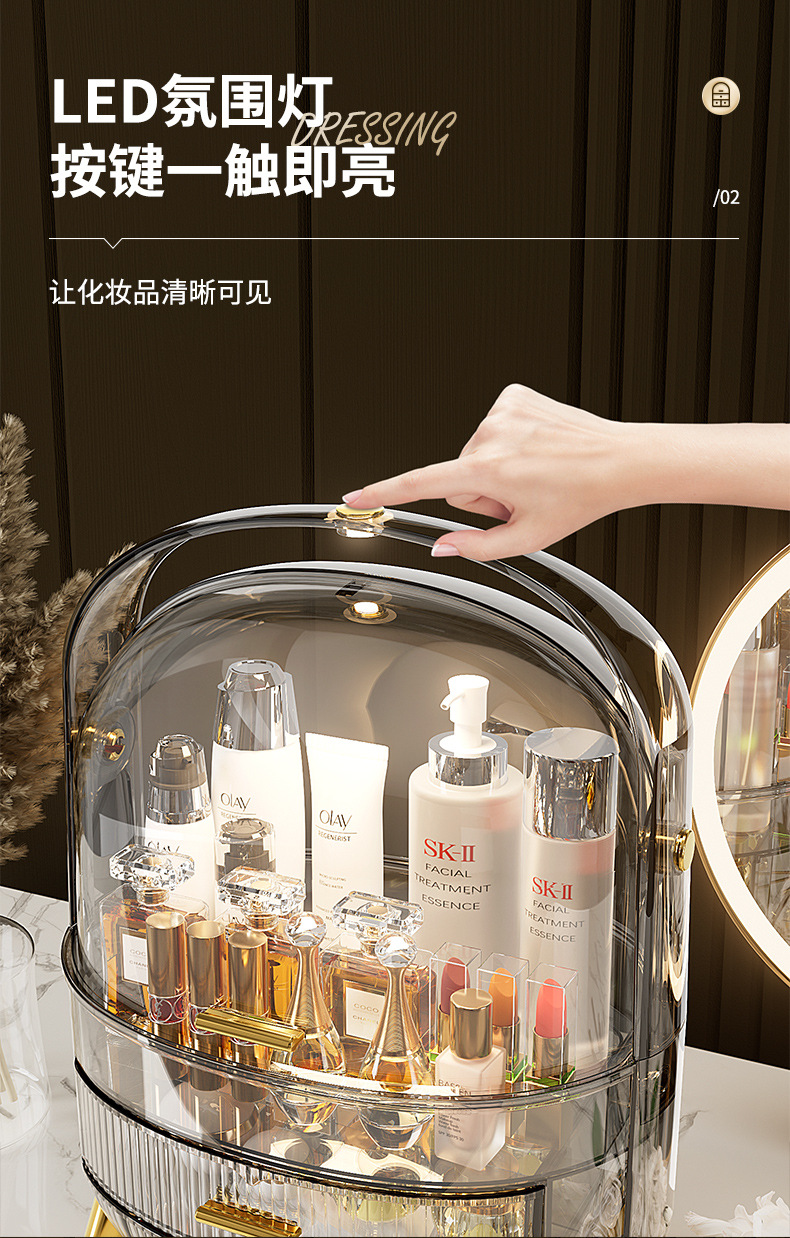 Desktop Drawer With LED Light Transparent Cosmetic Organizing Box