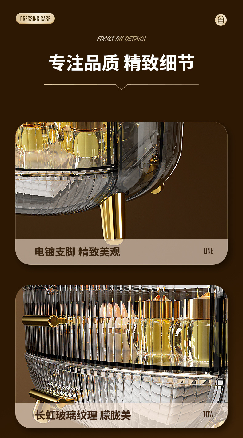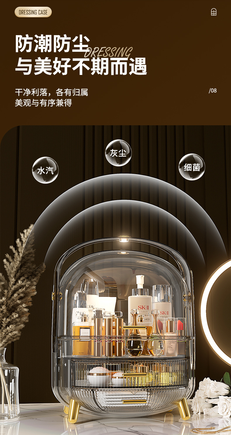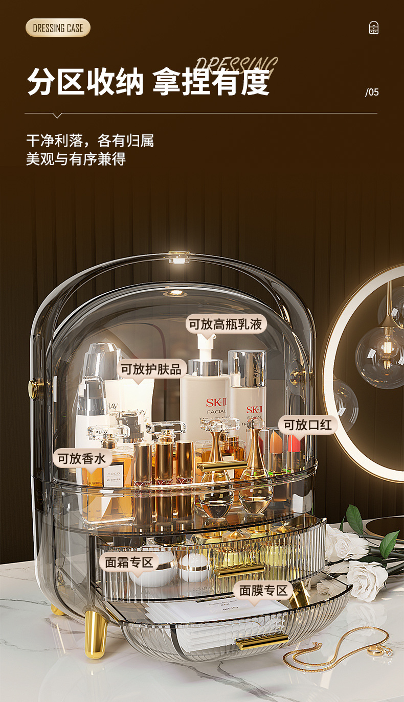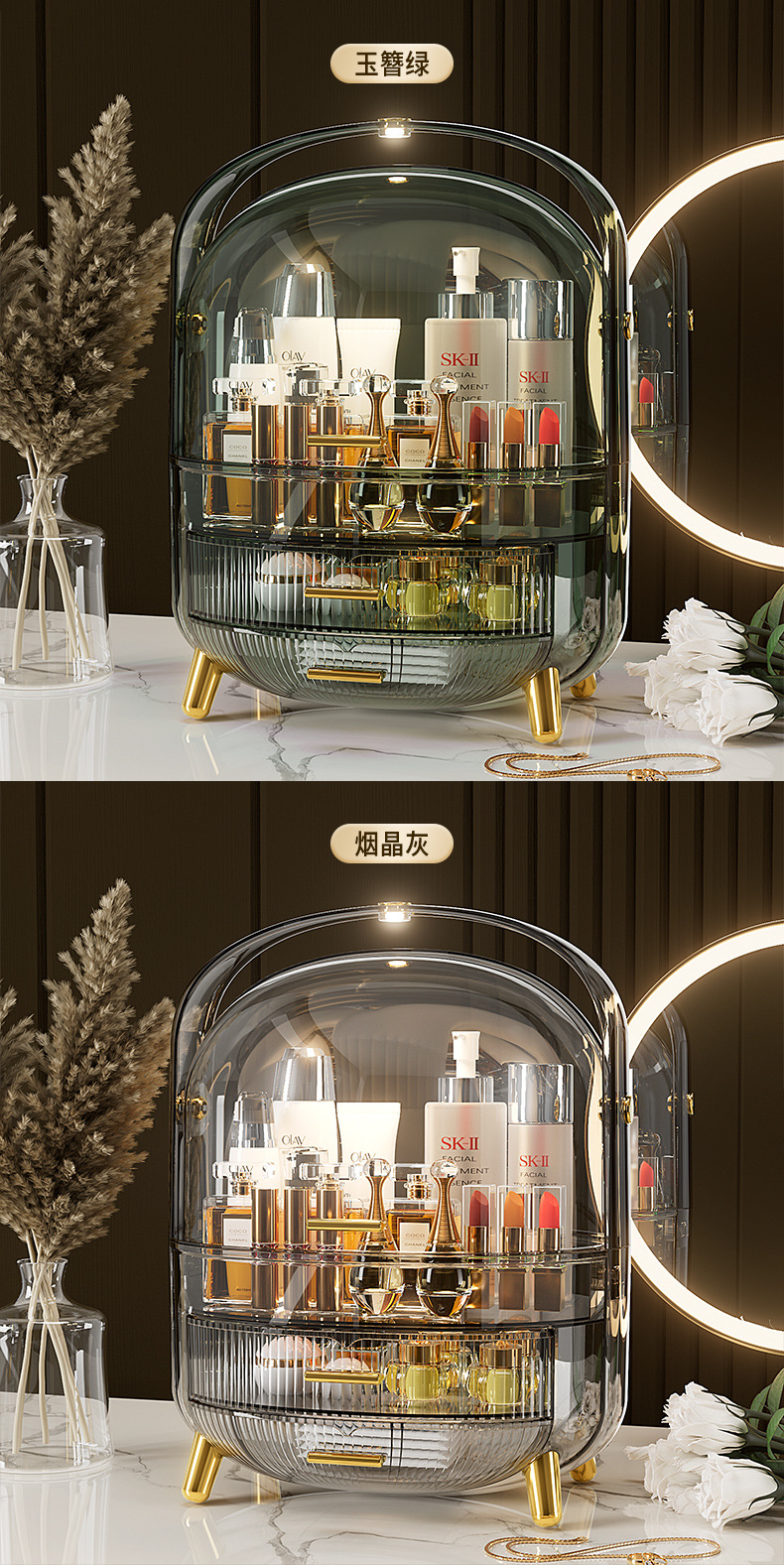 Desktop Drawer With LED Light Transparent Cosmetic Organizing Box